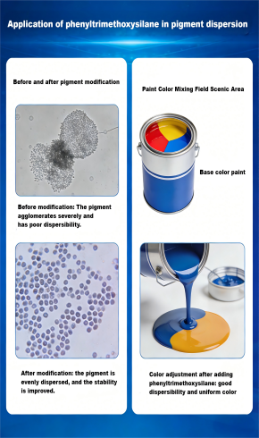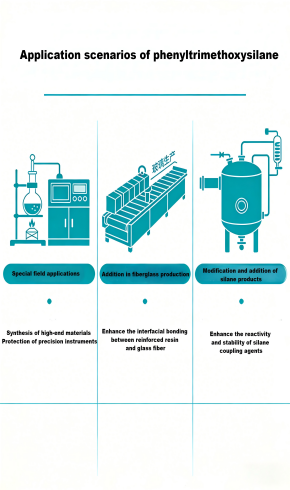 페닐 트리 메 톡시 실란은 여러 가지 우수한 특성을 가지고 있으며 유기 실리콘 재료 합성,코팅 및 잉크,복합 재료,플라스틱 및 고무,필러 수정,자동차 산업,전자 및 반도체와 같은 다양한 분야에서 유기 실리콘 중간체,개질제 및 표면 처리제로 널리 사용됩니다. 각 응용 프로그램 시나리오는 직관적으로 응용 프로그램 값을 제시하기 위해 실제 응용 프로그램 사진과 함께 제공됩니다: